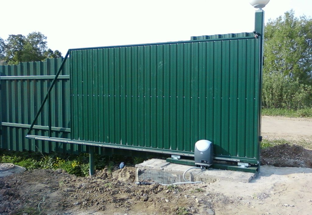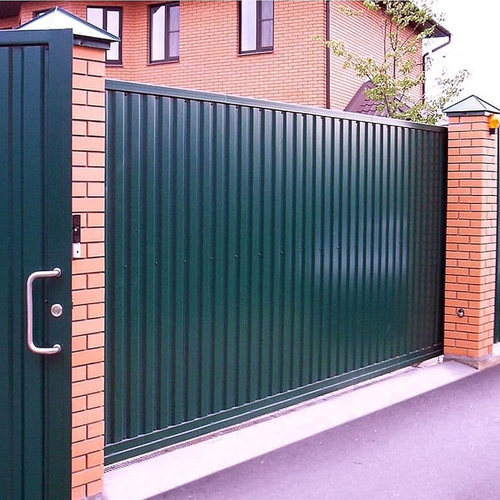 Откатные ворота из профнастила с автоматикой